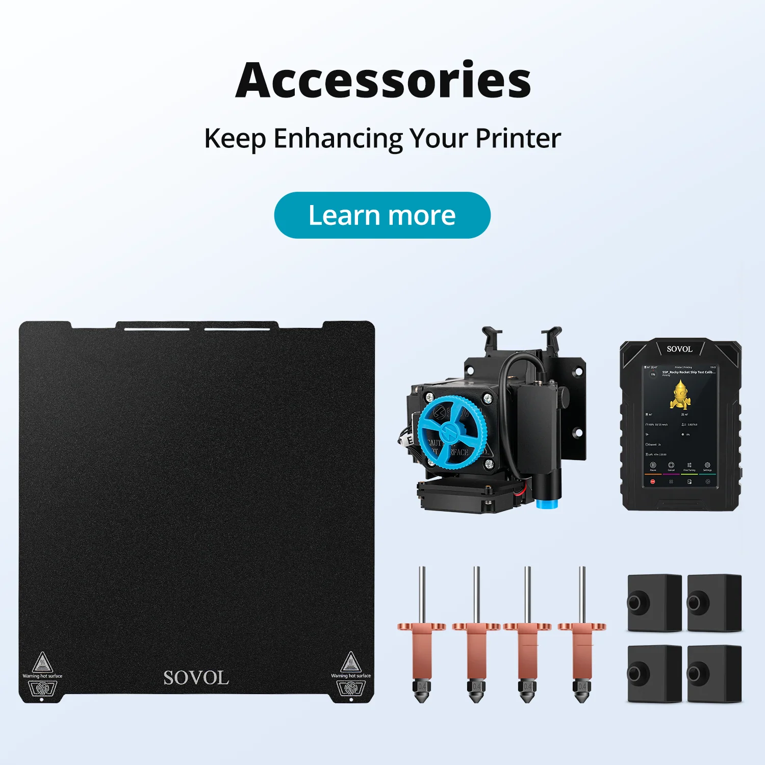 From high-precision 3D printers to premium filaments and powerful accessories, Sovol empowers makers, educators, and professionals to create without limits. Explore a complete ecosystem built for innovation and reliability.
