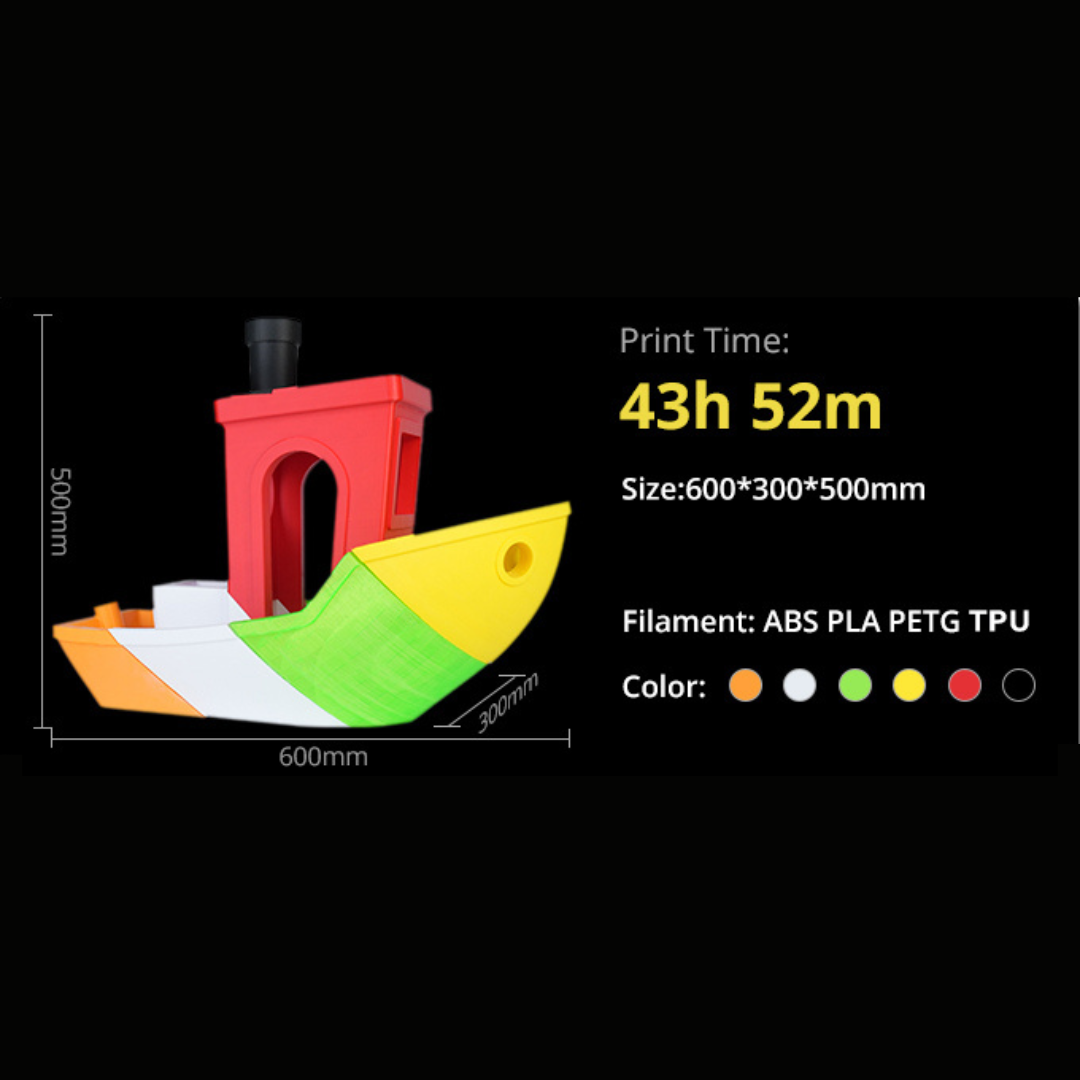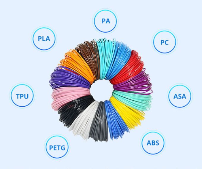 - PLA, PETG, ABS, TPU, ASA, PC, etc.