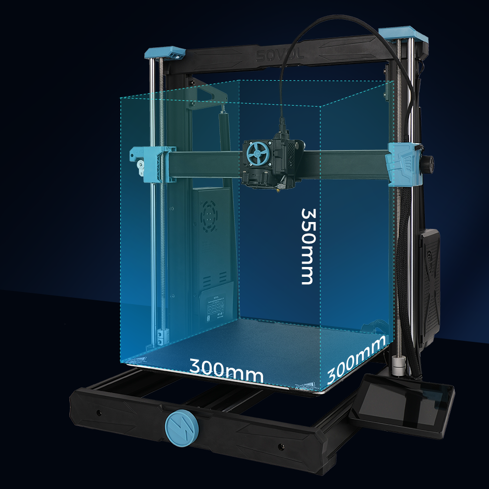 The printer supports a generous build volume of 300×300×350mm, ideal for large models or batch printing.