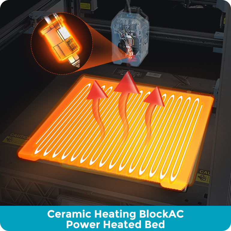 SV08 3D printer heats up rapidly, Ceramic Plate Heating & High-Flow Nozzle reach 300°C quickly and 220°C in 40 seconds. Using ceramic heating block & AC heated bed reduce heating time by 70%, allowing near-instant printing and easy preheating for nozzle cleaning and leveling. Enjoy precise, high-quality prints with versatile material compatibility.