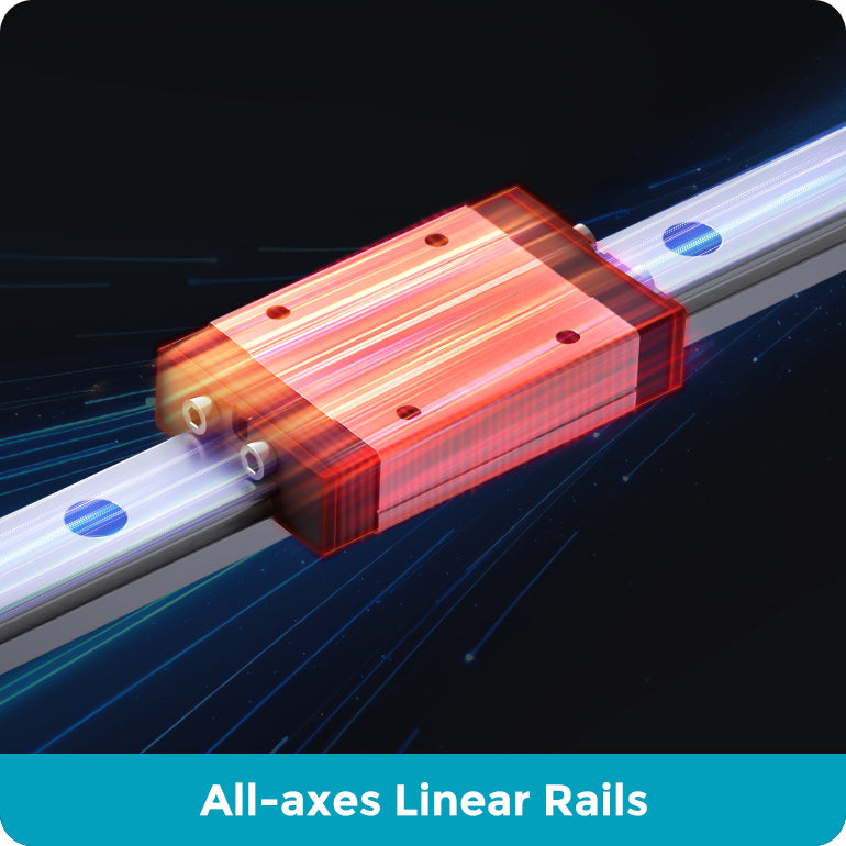 SVO8 utilizes linear rails for all 7 axes (4Z+2Y+1X) to improve precision and resistance to axial movement deformation.The provision of smooth and precise linear motion is crucial for producing high-quality prints. These rails guide the printer's print head and build platform, ensuring accurate positioning and consistent, smooth movement throughout the printing process.